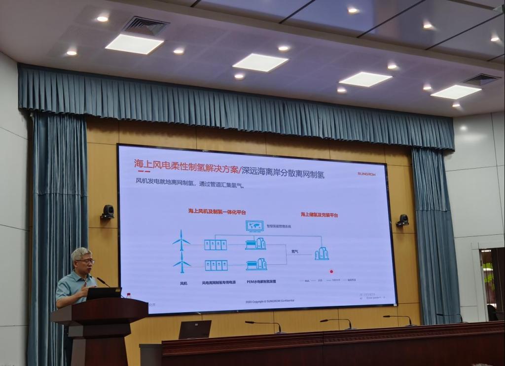 阳光电源股份有限公司中央研究院副院长徐君博士的主讲题目为“光储产业技术现状及发展趋势”,。徐君博士一方面介绍了全球新能源发展的现状和趋势,一方面结合阳光电源的现状,介绍了光储系统、可再生能源柔性制氢系统以及35kV中压直挂光伏逆变器的研究现状、应用场景以及未来的发展潜力。