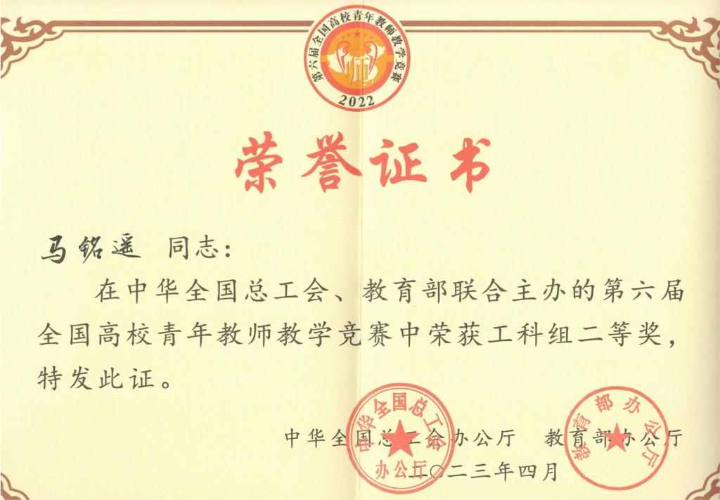 马铭遥老师经过激烈角逐,获得全国青教赛二等奖,工科组第六名。