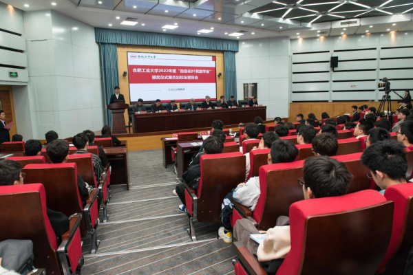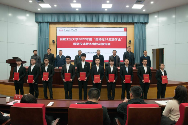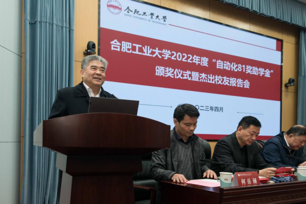 第八届“自动化81奖助学金”颁奖仪式暨杰出校友报告会在学术会议中心一楼大报告厅举行。校党委常委、副校长刘晓平,“自动化81奖助学金”捐赠校友代表、深圳达实智能股份有限有限公司董事长刘磅、蚌埠电子信息产业技术研究院院长邵建强、中国银行蚌埠分行工会主席肖金元、合肥航天液压公司董事长戴林书、合肥华星集团董事长、合肥力宏科技公司董事长冯图等出席仪式,学校校友会办公室、继续教育学院、笔趣阁