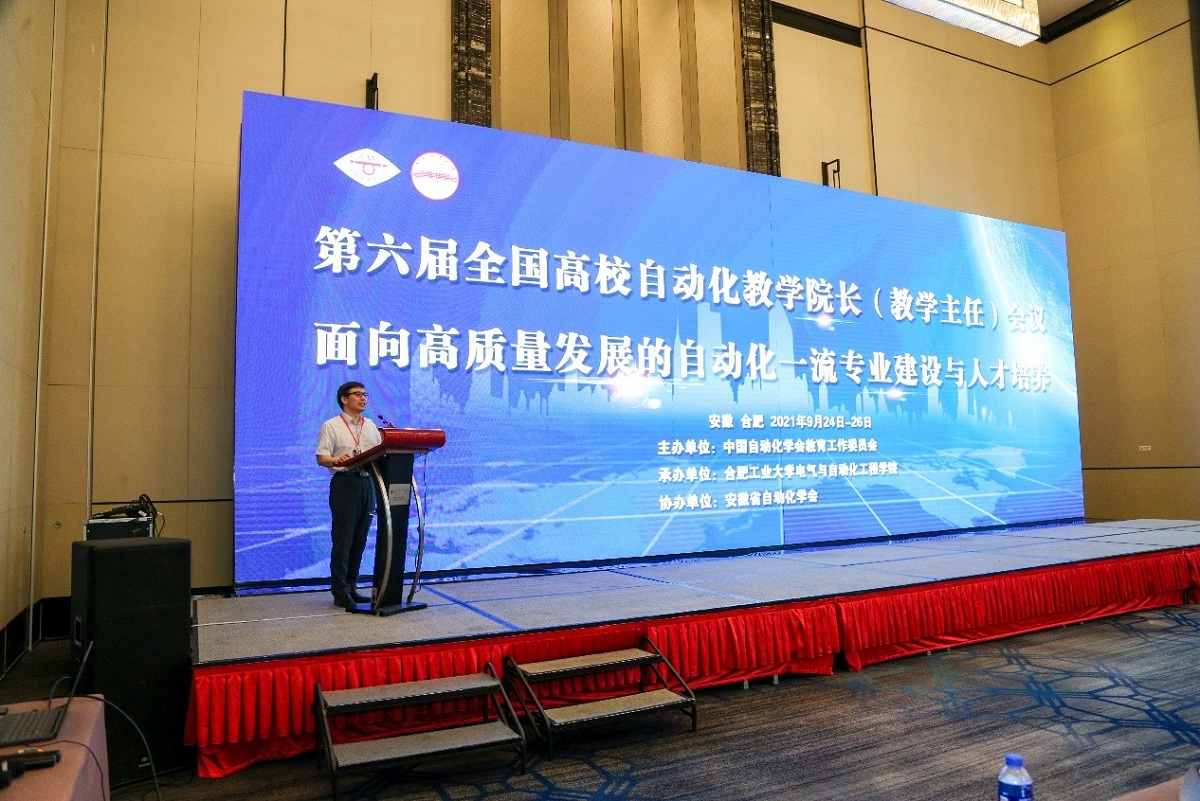本次会议主题为“面向高质量发展的自动化一流专业建设与人才培养”。来自全国100多所高校的自动化类专业教学院长、系主任及相关企业代表200多人参加了会议。中国工程院院士杨善林、我校校长梁樑等出席会议。会议采用专业线上直播平台同步直播,线上参会1700余人次。