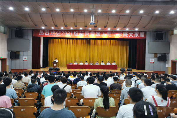 于8月28日上午在学校屯溪路校区斛兵礼堂举行了以“使命在肩,奋斗有我”为主题的新生见面会。电气学院领导班子、本科专业系部主任和专业负责人老师、电气学院全体2021级新生参加活动。