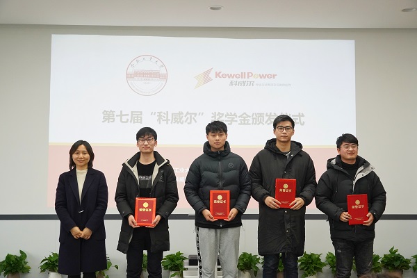 第七届“科威尔”奖学金获得者的决定》,与会领导为获奖学生颁发荣誉证书。颁奖仪式后,工作人员带领师生参观了科威尔公司的办公区和生产车间,展示了公司温馨的工作环境和员工昂扬向上的精神面貌。