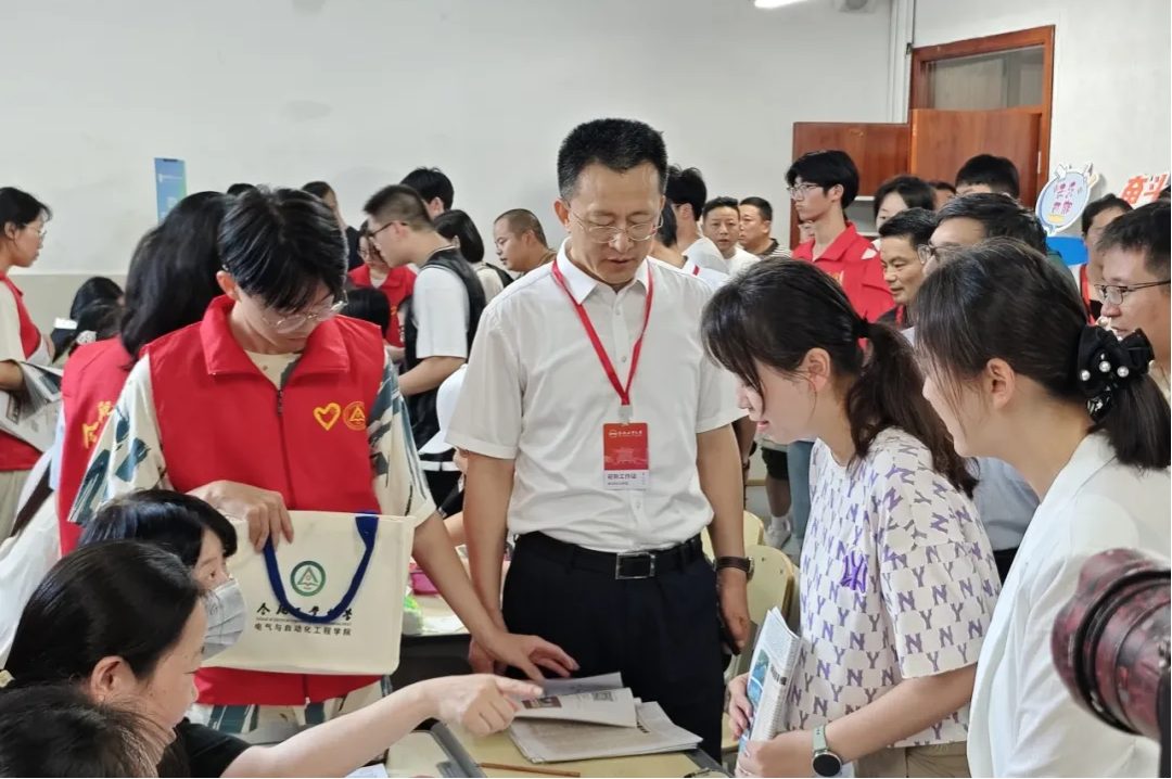 上午,校党委书记于祥成,校党委副书记、纪委书记施永红,党委常委、副校长季益洪,副校长丁立健一行来到迎新现场,检查指导迎新工作,看望慰问报到新生、家长和参加迎新工作的师生员工。学院党委书记何岳颀、学院院长向念文等学院领导深入注册教室、学生宿舍,亲切询问新生情况,耐心解答学生和家长的问题,并送上最诚挚的祝福。
