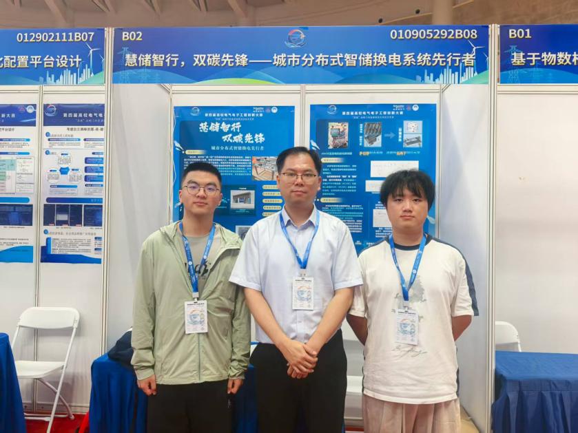 副院长孙伟教授和李飞副教授指导的作品——《慧储智行,双碳先锋 城市分布式智储换电先行者》(团队成员:朱锦峰、王卓凡、姚已轩、黄乐然、肖明亮)凭借卓越的表现荣获一等奖;副院长黄海宏教授和邓凡李老师指导的作品——《DC/DC双向功率变换器设计》(团队成员:尹军权、吴瑞峰、顾文宇、翟王健、陶旭晖、刘玉田)、张宇娇教授指导的作品——《新型硅钢槽盒治理三相电抗器漏磁引起的接地电缆发热故障研究》(团队成员:黄嘉奕、张熠、崔皓、孟文军)、杨晓东副教授指导的作品——《基于软件定义技术的高比例新能源配电网适变运行系统》(团队成员:席嘉、秦启越、杜耀宁、杨玉岩、李任静)、施永副教授指导的作品——《知氢达理——车用燃料电池健康状态监测系统》(团队成员:黄程、刘文斐、卢康健)四支队伍荣获二等奖。