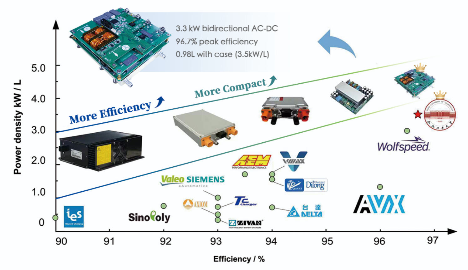 图2 恒爱精诚团队参展的3.3kW双向车载充电机,其性能处于国际领先水平