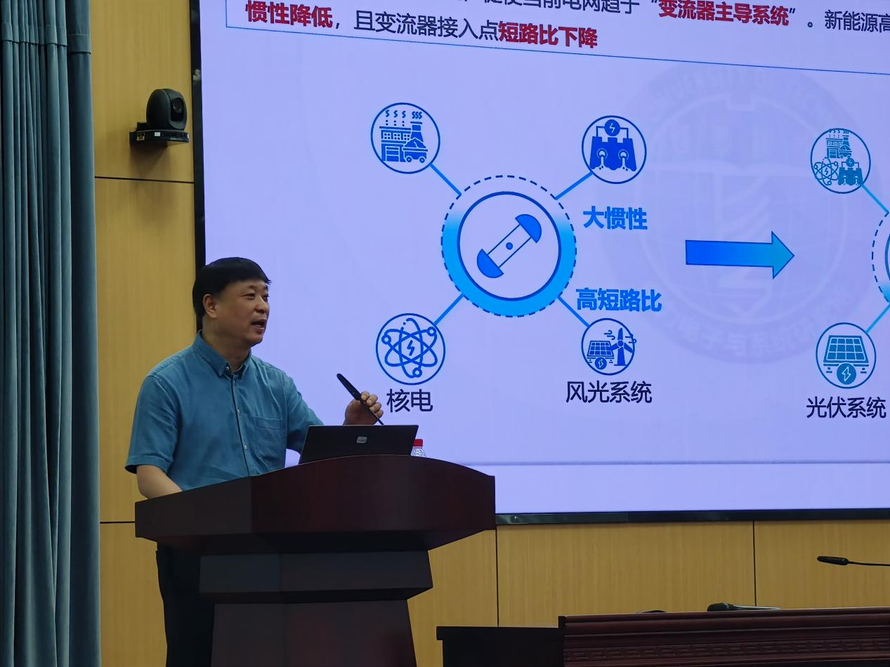 的张兴教授为大家带来“高渗透率新能源发电构网型控制方案浅析”的课程。张兴教授先是阐述了当前构网型逆变器的研究背景,之后结合最新的研究成果,为大家介绍了改进的有功环构网控制、基于虚拟导纳的构网控制、直流电压同步构网控制、虚拟振荡器构网控制等各种构网型逆变器的控制方法。最后张老师指出。随着新能源渗透率的进一步提升,频率波动会进一步凸显,构网型控制将为新能源占有率的逐步提升而发挥更大的作用。