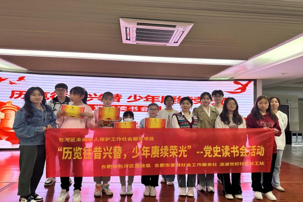 第二党支部联合包河区未成年人保护工作社会服务项目组于滨湖世纪社区开展“历览往昔兴替 少年赓续荣光”党史读书会活动。