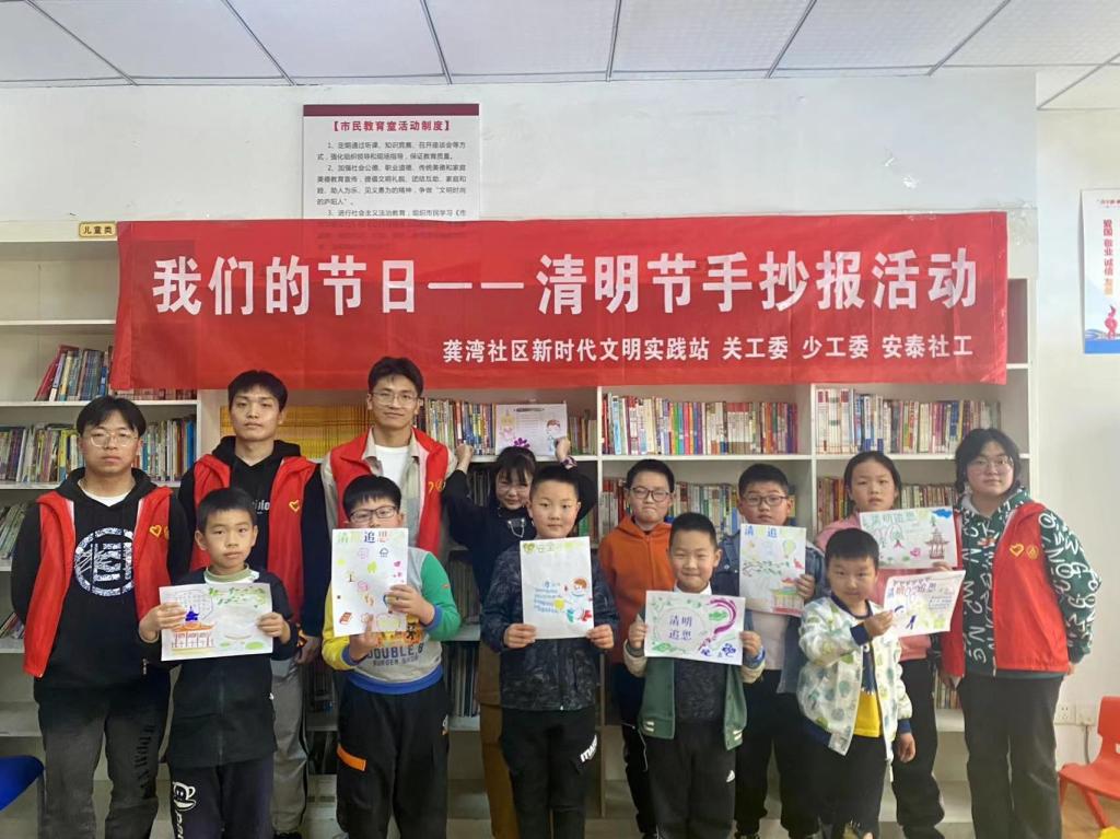 阳光志愿服务中心志愿者前往龚湾社区开展“我们的节日——清明节手抄报”志愿服务活动。