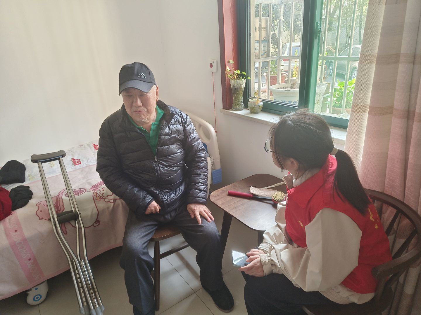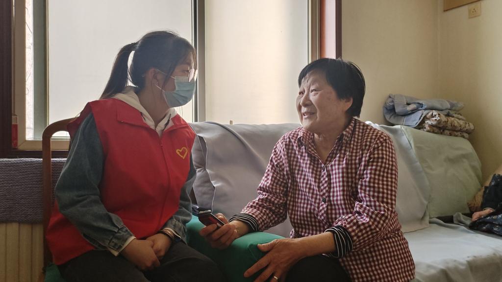 志愿者与老人交流谈心