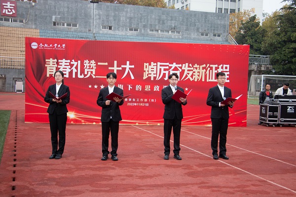“青春礼赞二十大,踔厉奋发新征程”主题升旗仪式暨国旗下的思政课在屯溪路校区西操场举行,学院党委相关负责人、学院全体辅导员以及全体本科生、研究生3000余人参加活动。