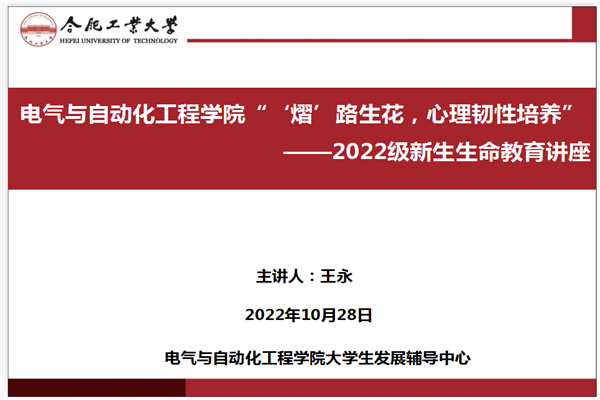 通过腾讯课堂平台学院开展“‘熠’路生花,心理韧性培养”新生生命教育讲座,活动邀请了合肥幼儿师范高等专科学校王永教授主讲,全体2022级本科新生聆听讲座。
