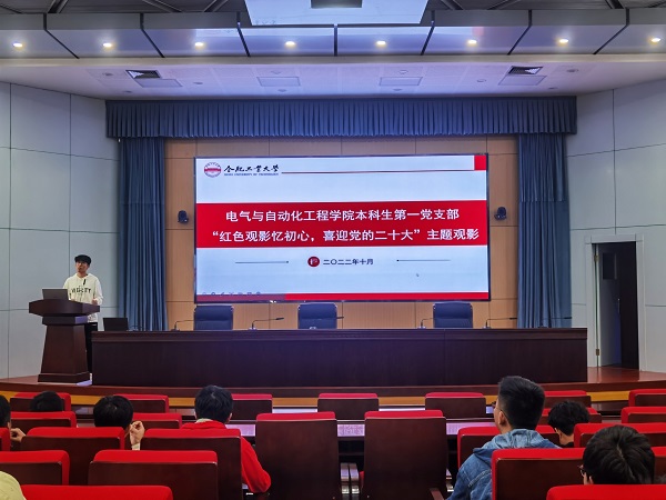 本科生第一党支部在屯溪路校区学术会议中心大报告厅举办了“红色观影忆初心,喜迎党的二十大”主题观影活动,党支部全体党员、预备党员、发展对象和积极分子参加活动。