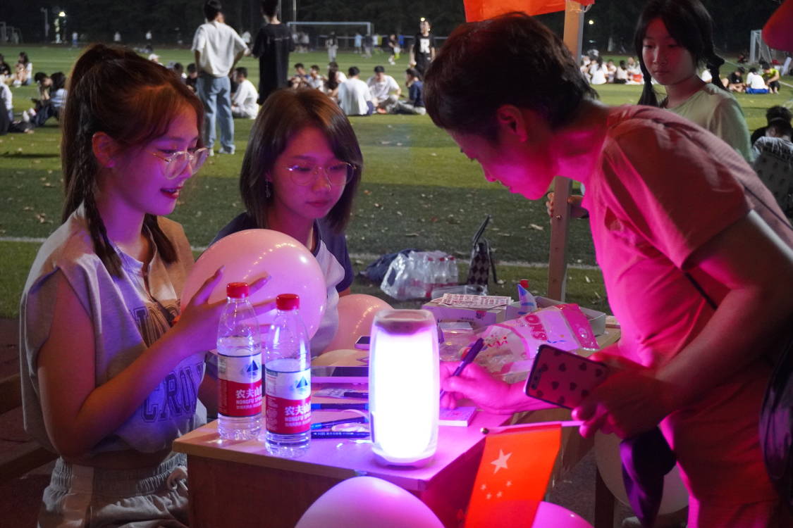 活动中,每位2022级同学在卡片上写下对未来自己想说的话、对未来立下的目标和期望,在末尾备注个人联系方式,随后将卡片封存在象征着时光胶囊的玻璃瓶中。瓶子由主办方暂为保管,待四年后重启。高年级同学则为新入学的学弟学妹们写下祝福,帮助他们更快融入工大生活,同时也可以将内心烦闷之事写在卡片上投入“烦恼收集箱”中。“当我四年后再打开这封信时,或许我已经交到了许多志同道合的朋友,学到了更多的知识。”“精于勤,荒于嬉。”“相信四年后的我仍会不断探索,砥砺前行!”参与活动的同学们纷纷感慨道。操场上,新老生一起在愉快交流、畅想未来,在舒心的校园氛围中踏上一场跨越时空的心灵交流。此外,参与活动的同学们还纷纷与玩偶大熊和皮卡丘拥抱,并获得了主办方的精美小礼品。