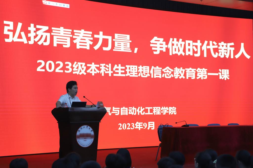 精神韫钰教育第一课。学院组织开展“弘扬青春力量,争做时代新人”“传·校园里的新文化”“续·校史里的新故事”等专题活动,旨在帮助新生认识大学、了解环境,发掘自身的优势,培养集体责任感和专业认同感。在“弘扬青春力量,争做时代新人”理想信念教育第一课报告中,学院党委副书记兼纪委书记李丽鹏围绕透视青年大学生不愿奋斗的表象、探寻矢志奋斗的意义和揭秘不懈奋斗的“密码”三个篇章展开,为新生带来一堂有严有趣,解困解惑深刻而又生动的课堂。在“解·校园里的新文化”校园文化教育第一课专题报告会中,2023级辅导员吴泽城就新生普遍关注的泛性切入点展开,从环境适应、自我认知、心态调节、能力塑造等多个角度回应了新生在大学生活中可能遇到的机遇和挑战,促进新生尽快将个人发展与学校培养、社会培养有机结合;在“续·校史里的新故事”校史校情教育第一课实践活动中,铺陈的老物件、典型的老故事、优秀的老前辈……伴随着文字图片、多媒体影像,学校的历史沿革生动地在新生面前铺开,在辅导员融专业特色的讲解下,学生纷纷表示这是一次学史之行,也是一次学知之行,要铭记校史馆里的旧荣光,续写青年学子、工大学子、电气学子的新故事。