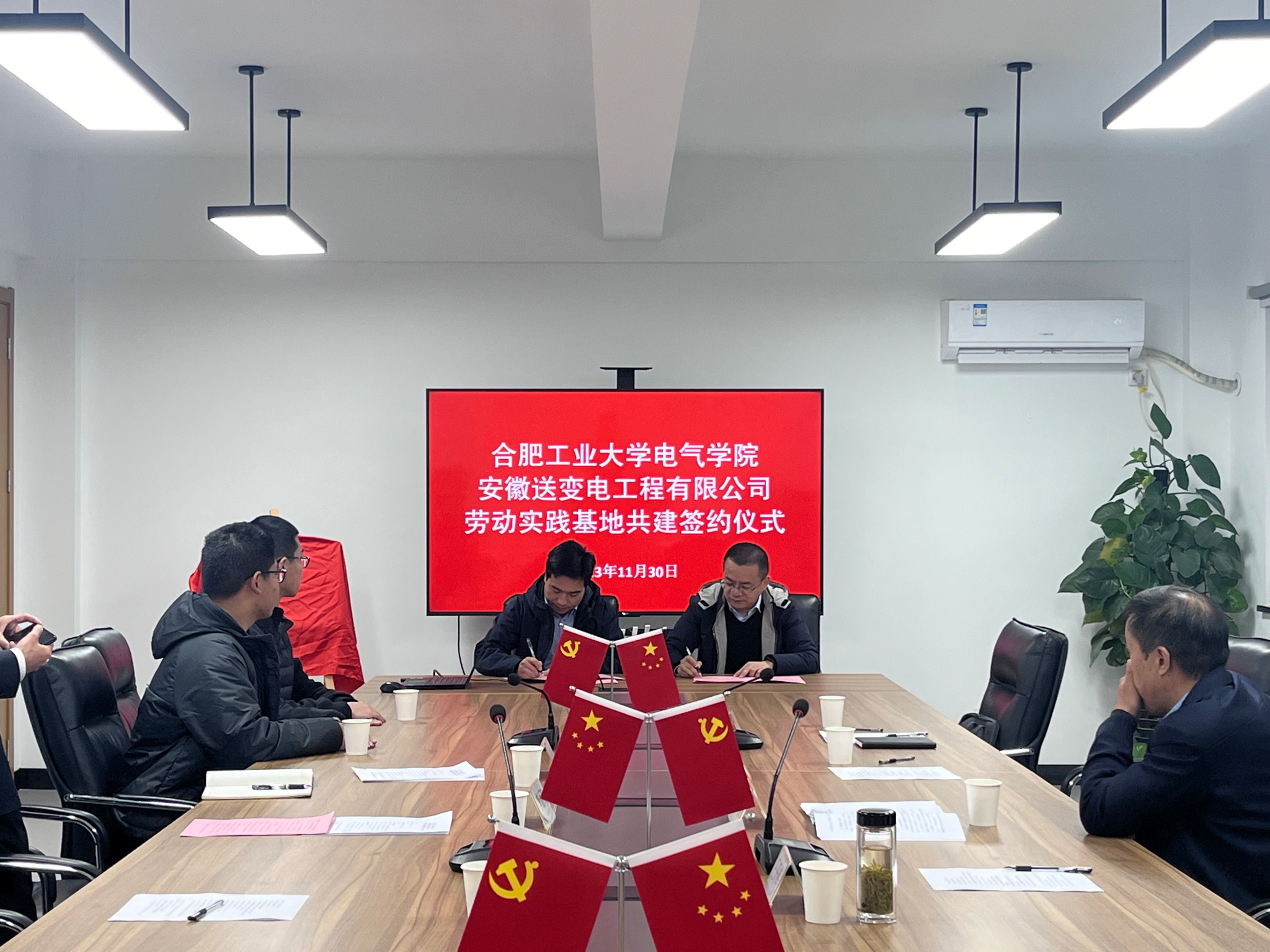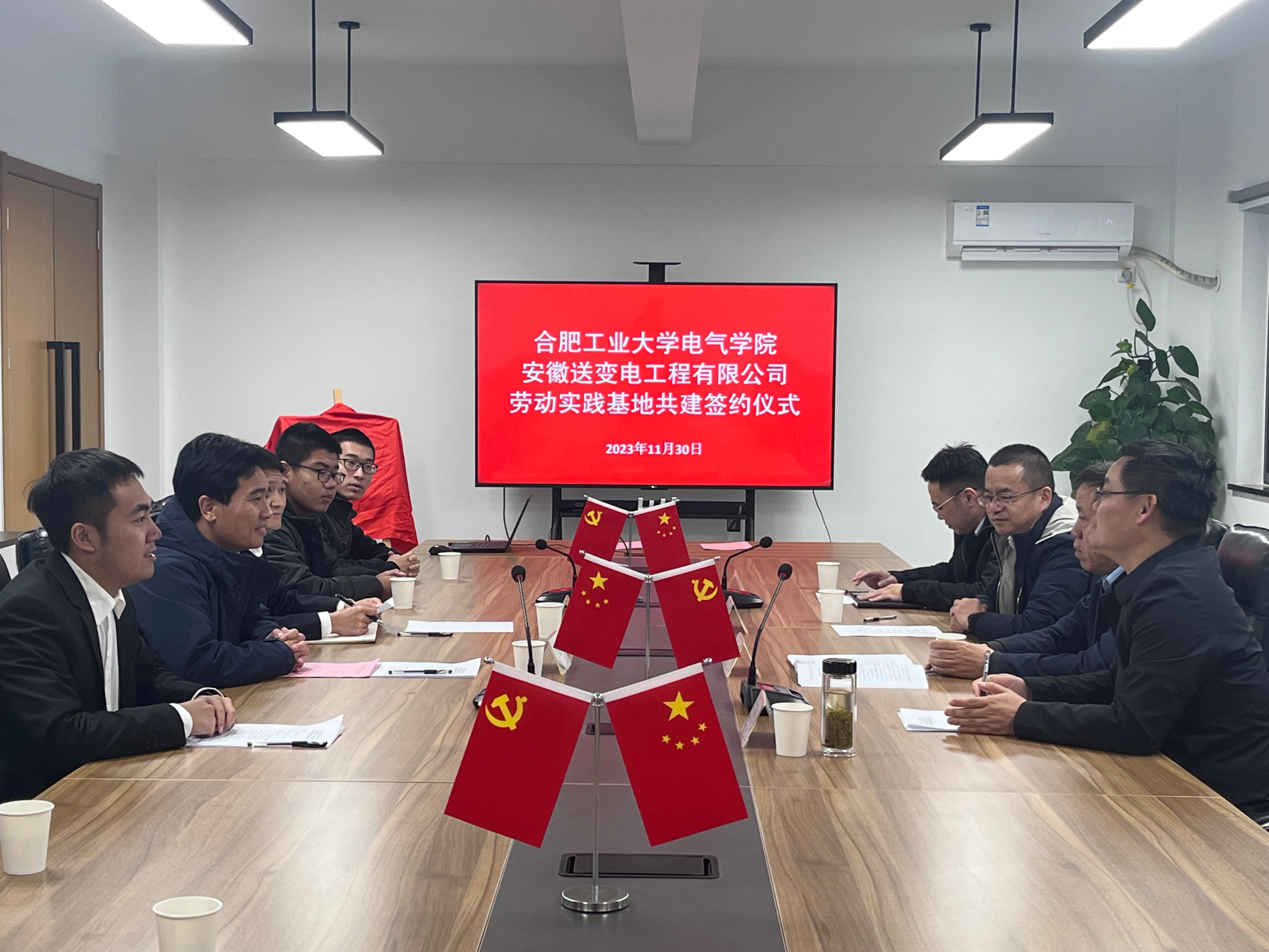 与安徽送变电工程有限公司共建大学生劳动教育实践基地签约揭牌仪式在送变电工业园会议室顺利举行,安徽送变电工程有限公司纪委书记、工会主席孔闻,全国劳动模范、安徽送变电工程有限公司三级职员王开库,安徽送变电工程有限公司党委组织部(人力资源部)主任陈文斌、副主任宋宇飞,笔趣阁