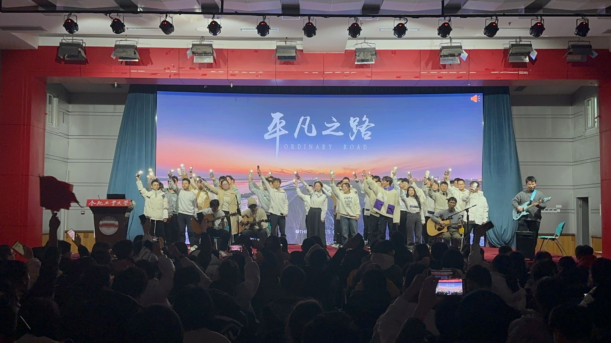 在第三篇章中,自动化23-1班的《盛世中国》、相声《学外语》以朗诵的形式表达了新时代的青年人对于改革四十余年的赞美,以诙谐幽默的方式展现出文化交融的繁荣发展。电气23-5班的小品《时间都去哪了》通过刻画主人公的内心活动,描绘了面对时间抉择的心里矛盾,呼吁大家提升自控力和专注力。最后,机器人23-2班的合唱《平凡之路》传递了积极向上的人生态度和昂扬奋发的青春风貌,在强烈的共鸣中全场全场共唱,将整场汇演推向高潮。