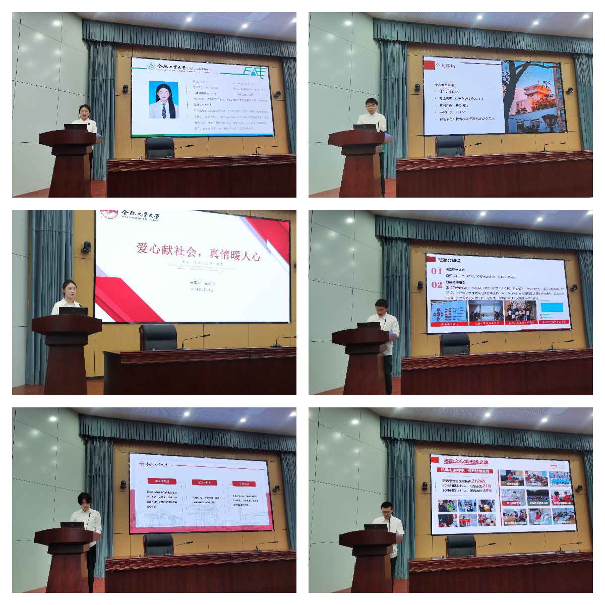分享交流环节,十佳大学生志愿者代表分主题开展志愿服务经验分享,赵静怡以《志之所向,愿之所在,从心开始,志愿同行》为题介绍自己的志愿服务经历和心得感悟,组织参与社区治理、儿童关爱、敬老服务等多项志愿服务活动,志愿时长累计310小时,她以自身经历呼吁青年学子在服务奉献中实现自身价值。崔涵月介绍了自己从坚守初心到茁壮成长再到使命传承的志愿经历,鼓励同学们投身志愿服务,贡献青春力量。张锐韩重点介绍了自己在社区基层锻炼、省立医院等方面的服务事迹,从个人素养提升、培养社会责任感等方面介绍了志愿服务的价值意义。电气22-4班张荣博、自动化22-2班吕双杰、自动化22-3班王张璟代表志愿服务先进班级做经验分享,他们介绍了班级的志愿服务理念、志愿服务整体情况、特色活动和突出典型,形成了“党建引领团建,团建带动班建”的总体格局,党团员带头服务,营造了人人参与志愿,人人乐于服务的良好氛围。受表彰的先进班级和个人有的利用寒暑假奋战在抗洪救灾一线,有的投身敬老助老服务,助力社区文明建设,有的热心教育事业,关爱困境儿童,陪伴成长成才,有的积极宣传环保理念,以实际行动守护美好家园,志愿者的优秀事迹感动了现场每一名观众,热烈的掌声在会场此起彼伏。