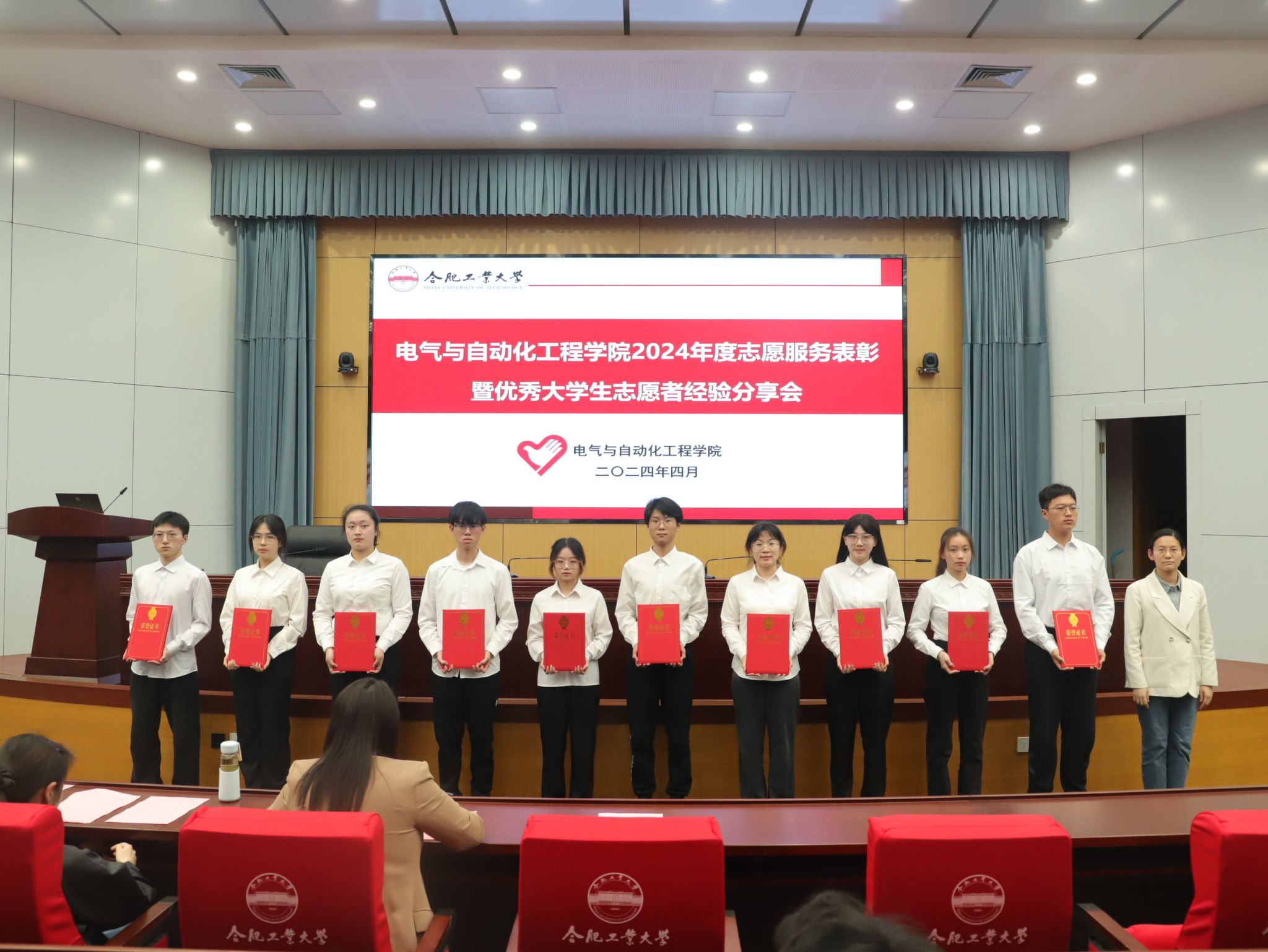 2024年度志愿服务先进班级、先进个人的决定》,与会领导老师为获奖的志愿服务先进班级和先进个人颁奖。