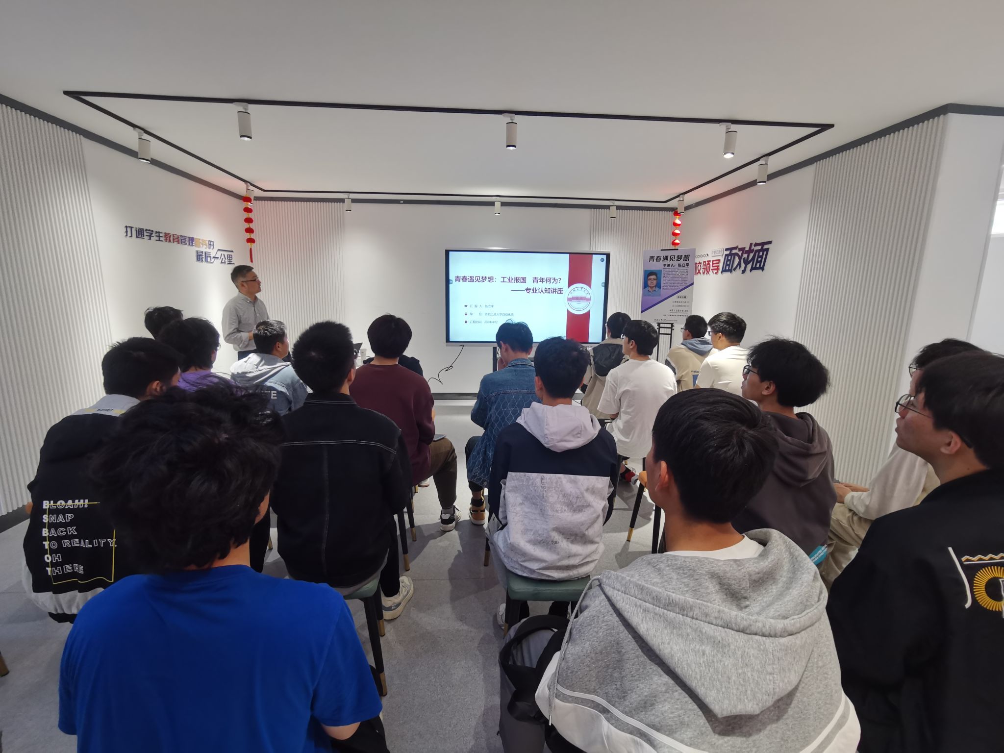 在屯溪路校区七号楼学生社区沙龙空间开展“青春遇见梦想”专业发展交流会,邀请学院自动化系陈立平教授为同学们做专题分享,学院30余名高年级学生参加活动。