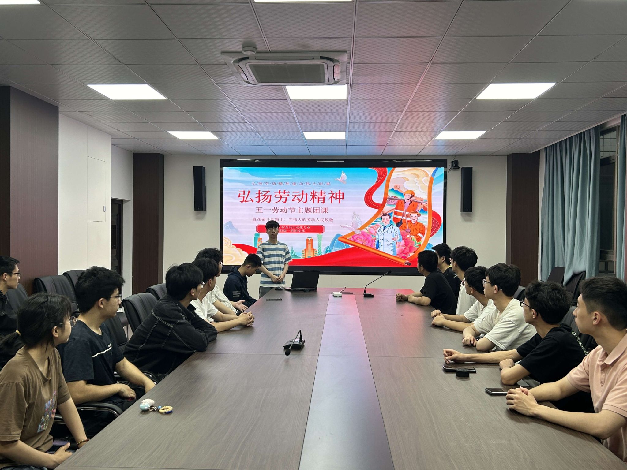 传承劳动智慧,颂扬劳动精神。为促进青年学子深刻了解劳动节的精神内涵,电气工程及其自动化专业2023级一班、二班团支部开展以“弘扬劳动精神”为主题的微团课学习,从劳动节的简介、起源与发展讲起,围绕总书记语录“幸福都是奋斗出来的”展开对青年大学生务实苦干提升自我、爱岗敬业争创一流、为实现伟大复兴的中国梦不懈奋斗的教育引导。中华民族伟大复兴的中国梦,需要靠辛勤的劳动创造,靠奋斗精神引领,团课结合劳模典范的故事对劳动精神的内涵进一步深化,引领电气学子弘扬劳动精神,在工作学习中不断提高和完善自我,脚踏实地,始终保持谦虚谨慎的工作态度,良好的精神风貌和饱满的工作热情投入到生活中,把劳动精神根植于自己的心田。