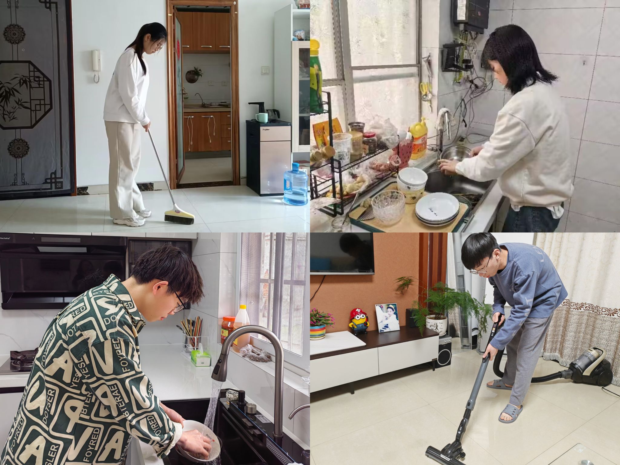 践行孝道美德,共筑温馨家园。借助五一假期放假回家的机会,学生也不忘在家践行五一劳动精神,帮助父母做家务,洗衣、做饭、洗碗、收拾房间一样不落,还协助父母照顾弟妹样样在行。同学们从小事做起,用真情和实际行动感恩父母。在此过程中同学们体会到父母的辛劳,明白孝敬父母的道理,也学会如何与父母沟通,用实际行动表达对家人的关爱和对劳动的尊重。同学们通过参与家务劳动明白劳动的重要性,以及当代大学生应该如何在日常学习生活中践行劳动精神,树牢工匠精神、劳模精神。也让学生们懂得传承中华民族劳动精神应从学生做起,从小事做起。