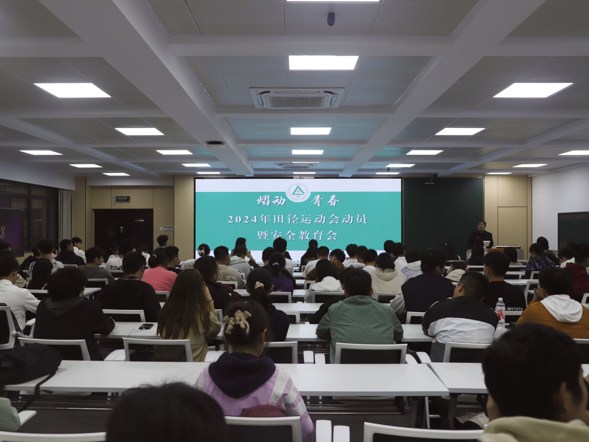 于逸夫楼1005会议室开展2024年田径运动会动员暨安全教育会,学院相关负责老师、学生会工作人员、全体运动员及运动会志愿者参加活动。