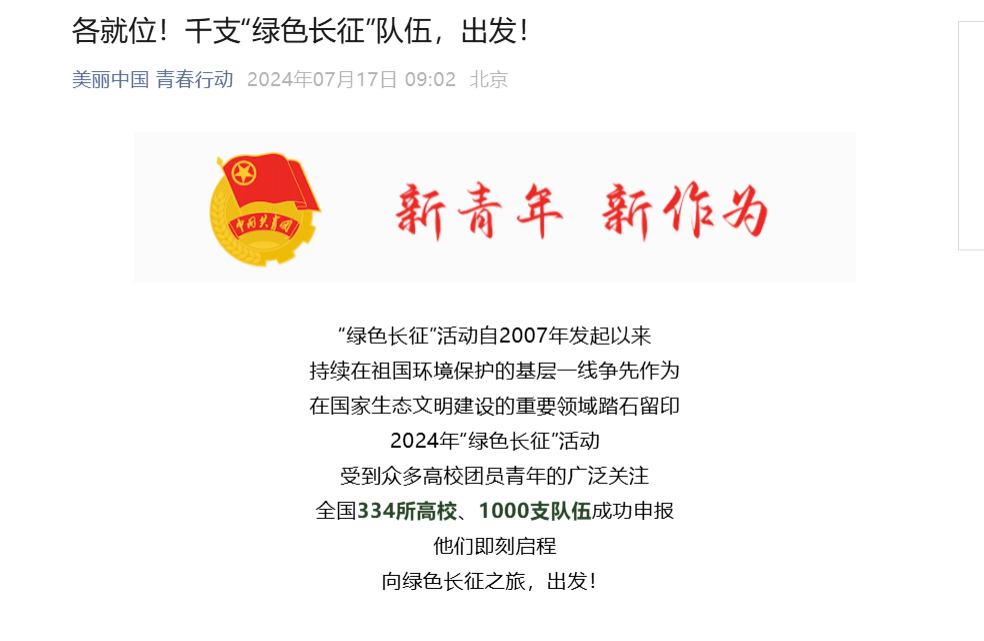 7月17日,共青团中央社会联络部公布了“美丽中国·青春行动”——2024年绿色长征科考实践活动入选名单,笔趣阁
