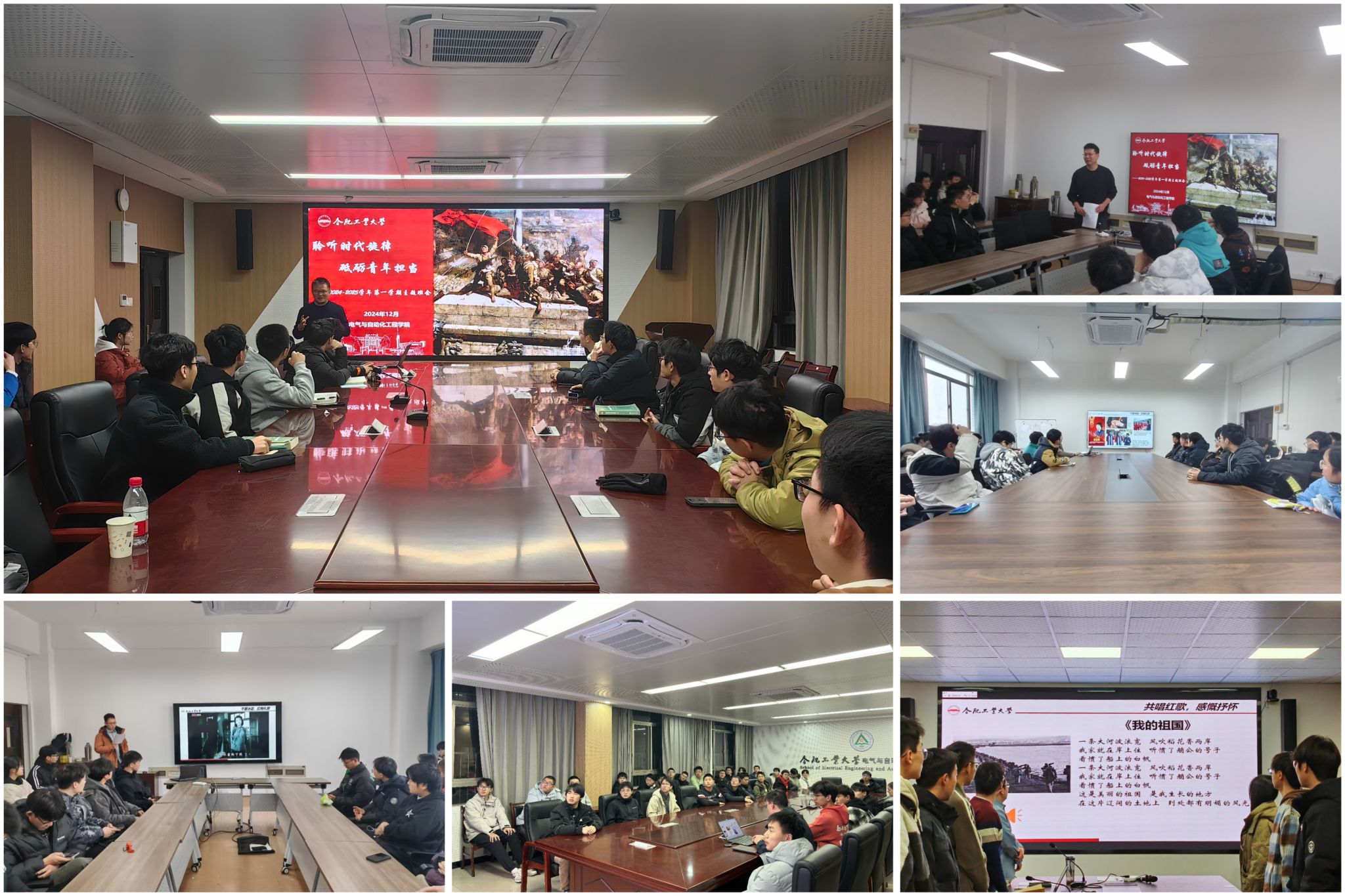 本学期班主任主题班会以《聆听时代旋律,砥砺青年担当》为题,向同学们阐述了爱国主义的核心内涵和重要意义,爱国主义是中华民族精神的核心,是激励中国人民团结奋斗、自强不息的强大精神动力。班会在《我和我的祖国》《建国大业》《觉醒年代》等爱国影视作品的精彩片段中彰显爱国情怀和民族精神,在《义勇军进行曲》《我的祖国》等爱国歌曲的品析唱响中坚定对祖国的热爱和祝福,礼赞新中国成立75周年。通过回顾中国近代史上的重大事件和英雄人物的事迹,班主任老师引导同学们深刻认识到,是无数先辈的英勇奋斗和无私奉献,才换来了今天的和平与繁荣。从抗战时期八路军、新四军等抗日武装力量在敌后战场英勇抗击日寇的故事,到新中国成立初期,无数建设者为了国家富强、人民幸福而艰苦奋斗的感人事迹,老师们勉励与会同学要有坚定的理想信念、爱国情怀,要有“自讨苦吃”的精气神,要理想远大、信念坚定,为民族与国家发展鼓足后劲,稳固定力,厚植情怀、矢志报国,增强志气、锤炼骨气、厚植底气,让青春在为强国建设、民族复兴的不懈奋斗中绽放绚丽之花。