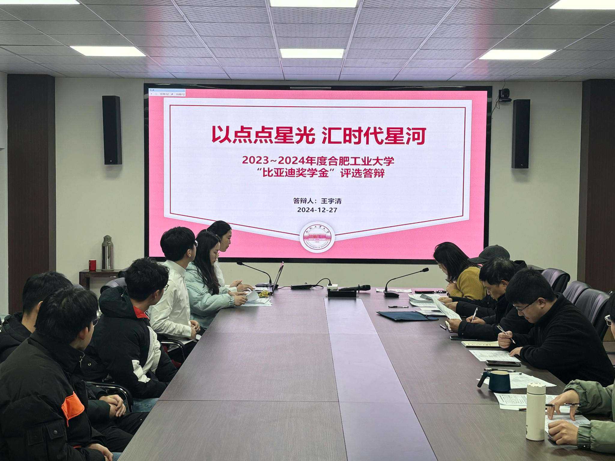第一届“比亚迪奖学金”风采展示会在逸夫楼1004顺利举行,申报“比亚迪奖学金”的同学和学院相关负责老师参加活动。