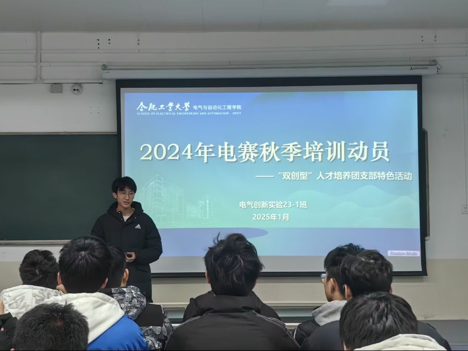 于主教学楼301教室开展“熠启电赛路,秋季培训行”特色主题团日活动,电气工程及其自动化专业2023级创新实验班全体同学参与活动。