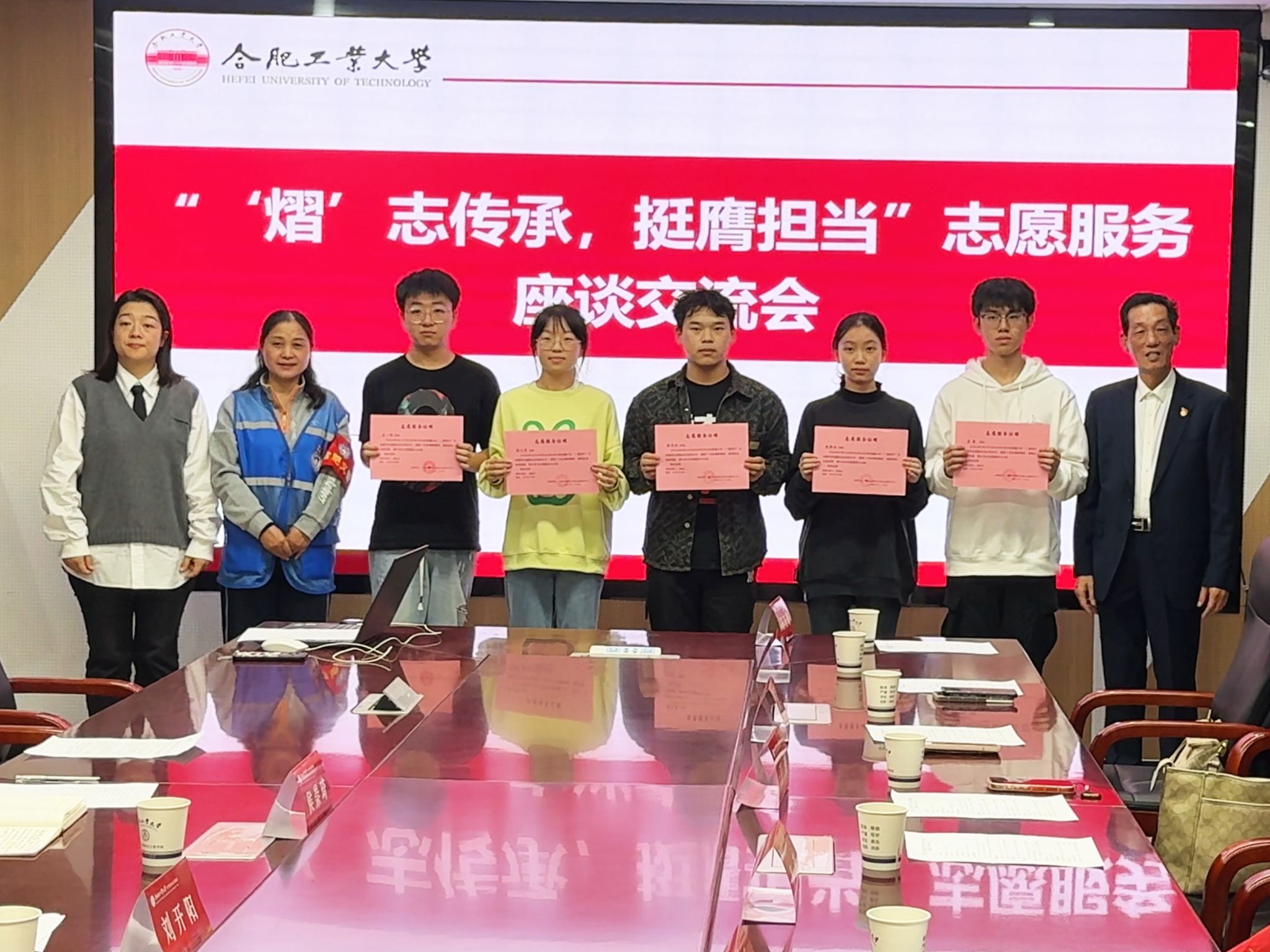 与瑶海区乐善公益服务中心在逸夫楼1009会议室开展“‘熠’志传承,挺膺担当”志愿服务交流会,瑶海区乐善公益服务中心理事长陈余文、乐善公益服务中心志愿者代表、学院学生工作办公室主任兼团委书记刘开阳、学生会秘书长、阳光志愿服务中心指导老师、志愿者代表参加活动。