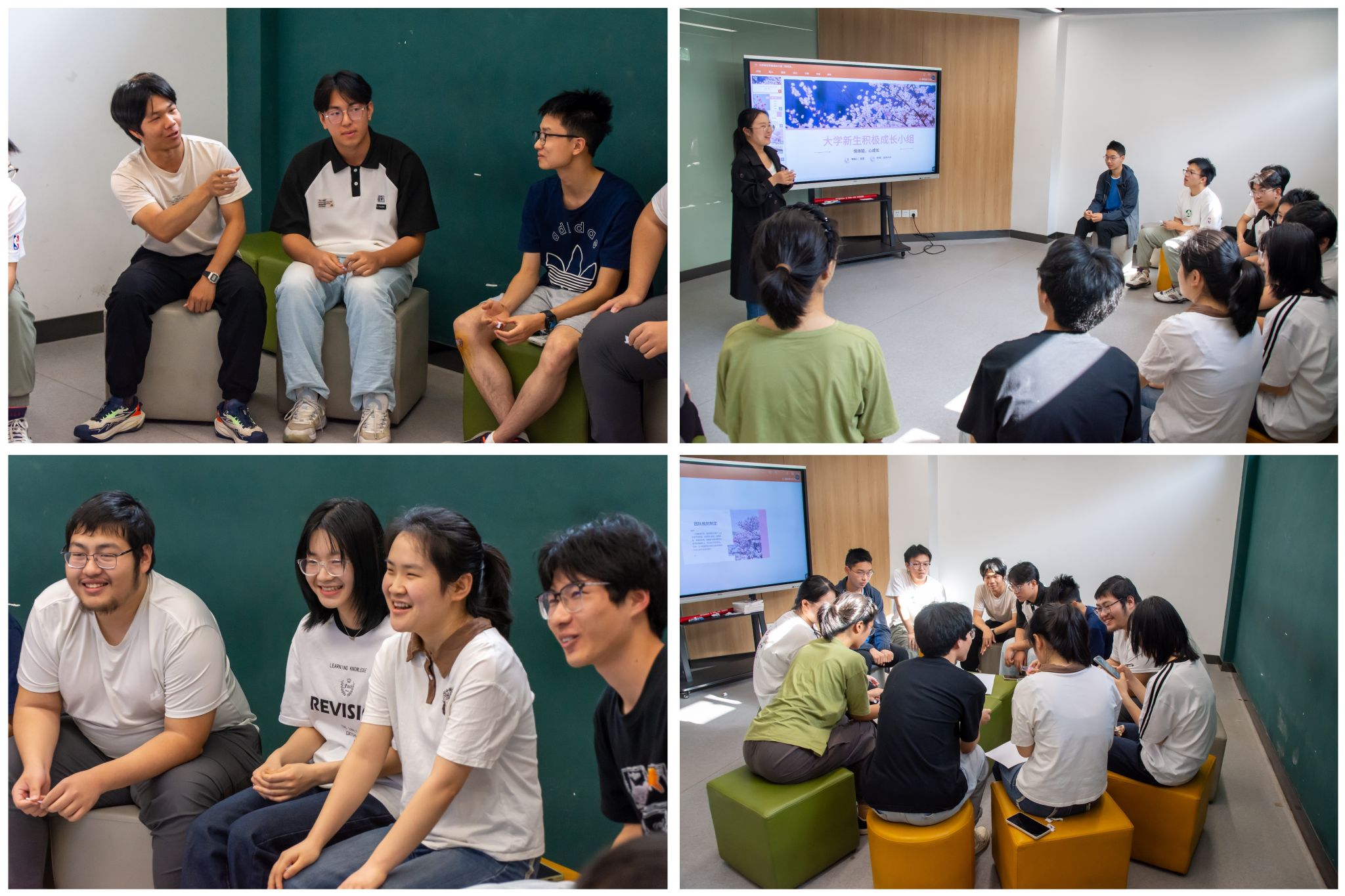 活动以“促进人际联结、构建支持网络”为目标,通过四个环节层层推进引导学生敞开心扉、融入集体。“心理版谁是卧底”作为暖场活动,帮助同学们打破陌生感,迅速建立初步交流。两轮“滚雪球”自我介绍中,通过依次复述前序同伴的姓名、班级及兴趣标签,同学们互相加深了了解。在指导教师的引导下,全体成员共同拟定团体契约,明确“守时参与、尊重隐私、包容差异”等原则,并进行集体承诺。在“酸甜苦辣”主题分享环节,大家围绕入学后的尴尬趣事、学业压力、成长收获等展开交流。