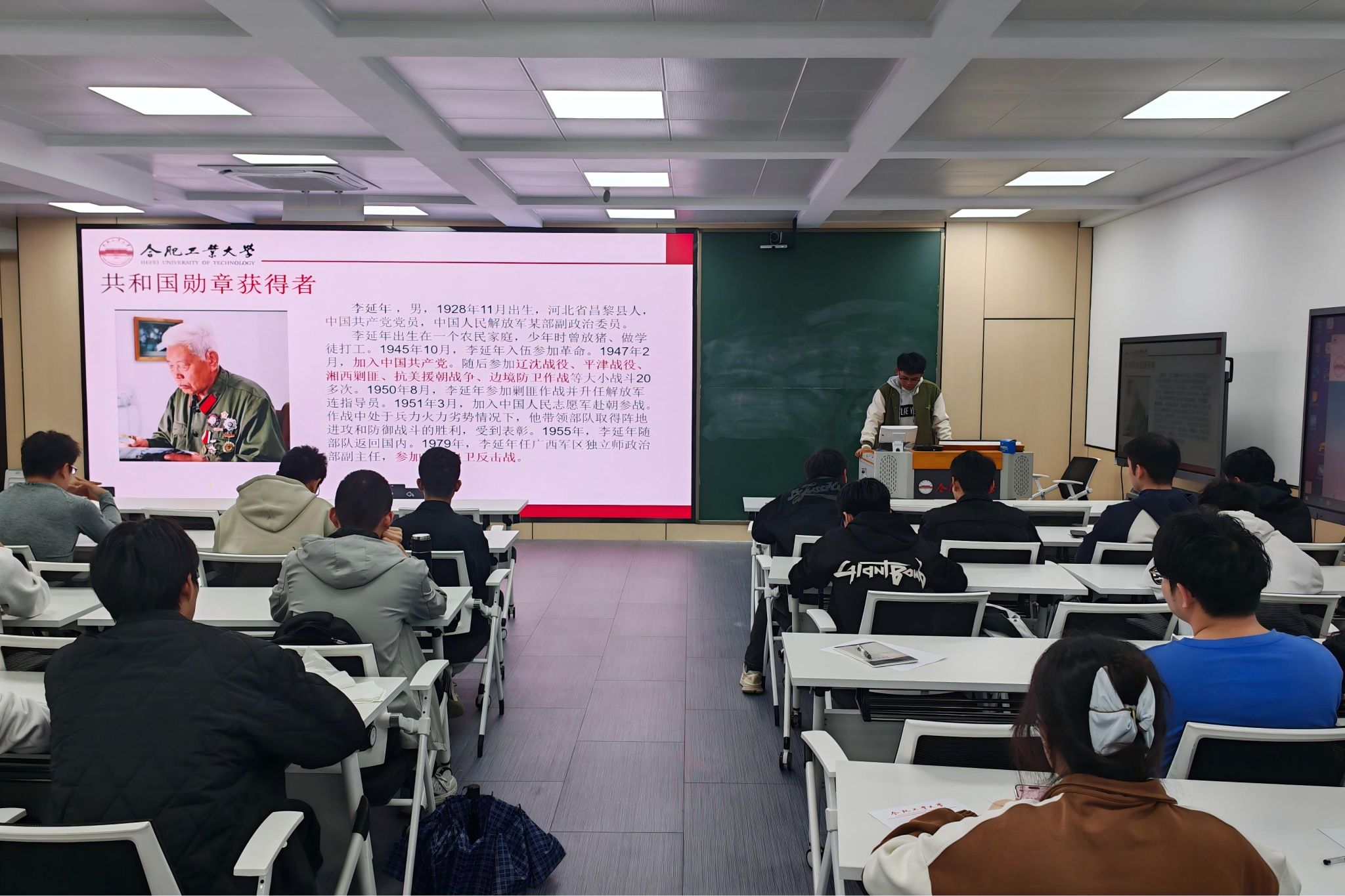 光影映功勋,心潮汇誓言。观影环节,全体学员集体观看了《功勋·能文能武李延年》影片,该作品生动再现了抗美援朝战争中李延年带领战友坚守346.6高地的英雄事迹。面对敌人多次猛攻,李延年指挥部队灵活调整战术,歼敌六百余人,成功守住阵地,展现了志愿军将士不畏强敌、英勇战斗的英雄气概。