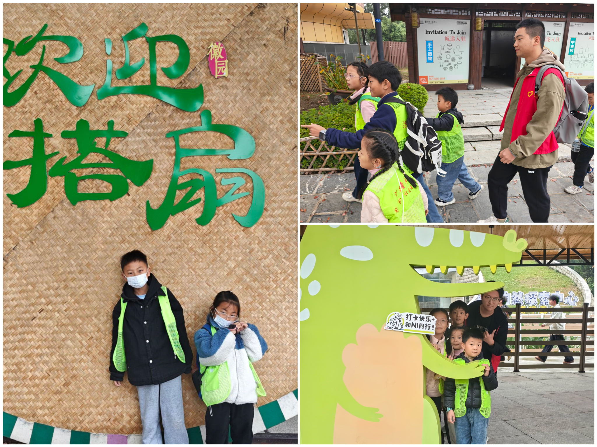 活动前期,志愿者梳理徽园游览信息与徽州文化内容,学习幼儿沟通技巧、安全防护规范,设计趣味问答互动环节。活动当天,志愿者身着统一红色志愿服,陪同小朋友赴徽园研学。在徽派建筑展区,志愿者以通俗化表达解读建筑特色,辅助直观演示帮助理解;在民俗体验区,指导小朋友实践活字印刷、剪纸等传统技艺。志愿者全程配合幼儿园负责老师紧盯小朋友行动轨迹、排查安全隐患、提供贴心保障。幼儿园相关负责人高度肯定志愿者的爱心与责任心,志愿者的参与既保障出行安全、内容充实丰富,又激发孩子们对传统文化的兴趣。