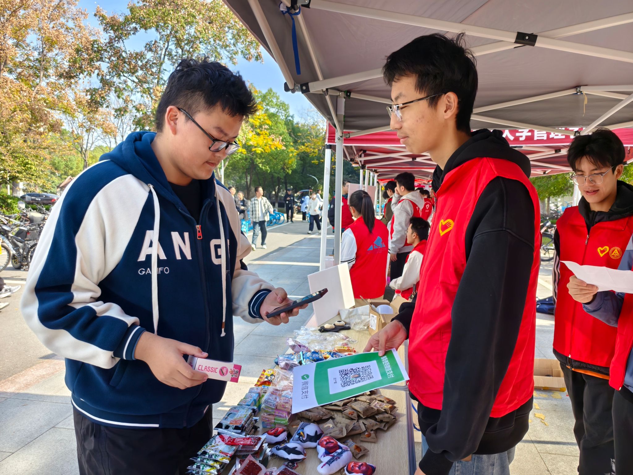 活动前,阳光志愿服务中心志愿者分组抵达场地筹备,高效完成物资装卸、分类陈列及定价工作,精心布置的义卖区格外吸引师生目光。活动恰逢校园人流高峰,宣传组志愿者化身“公益宣传员”,主动向途经师生讲解活动助力山区儿童的目的。后勤组则坚守岗位,实时核对交易收入并细致记录明细,确保每一笔善款清晰可溯,最终义卖累计筹得500余元善款。