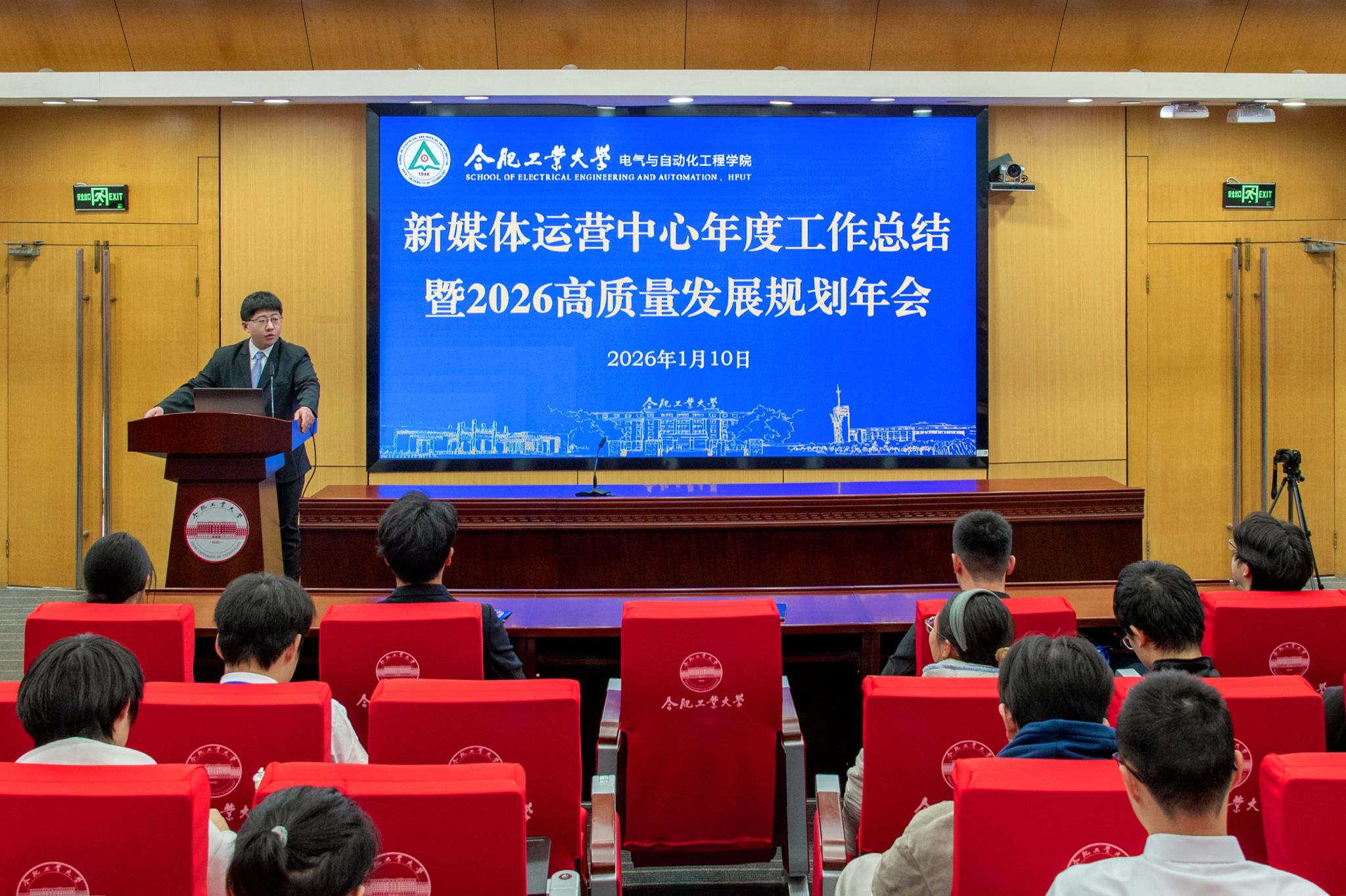 于学术会议中心二楼报告厅举行新媒体年度总结暨2026发展规划年会。学院相关负责教师、新媒体运营中心全体成员、往届骨干代表参加。