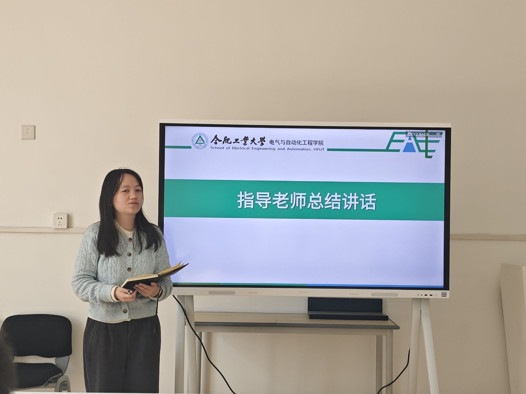 指导老师戴梦雅在总结讲话中对中心 2025 年的工作成果给予充分肯定,同时也指出了工作中的不足与改进之处。她首先肯定了全体成员这一年的辛勤付出,但也指出了工作中存在的不足,尤其是部分工作开展中不够规范、个别人员积极性有待提高等问题。结合学院发展目标,提出希望中心持续深化党团班一体化建设,进一步提升工作能力与活动质量,充分发挥桥梁纽带作用,能团结带领更多同学坚定理想信念、练就过硬本领,积极参与到中心的各项活动中来。