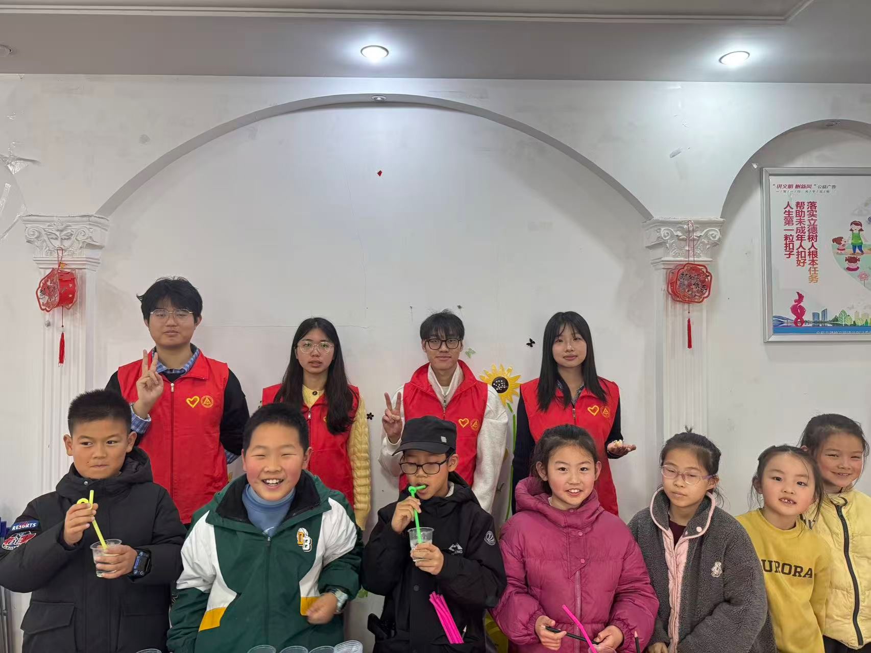 活动现场,阳光志愿服务中心志愿者设置两项趣味科学实验。“会魔法的吸管”环节,孩子们在志愿者指导下亲手折叠纸片、摩擦吸管,目不转睛地观察静电让纸片“舞动”的奇妙现象;“站立的牙签”实验中,大家依次添加洗洁精、搅拌泡沫,亲眼见证牙签在水中稳稳“站立”的瞬间,每一个步骤都伴随着阵阵惊叹与欢笑。活动中,志愿者们耐心细致地讲解实验原理,用生活化的通俗语言诠释静电引力、表面张力等抽象科学概念,孩子们全程积极提问、踊跃动手,在志愿者的贴心协助下顺利完成全部实验,脸上洋溢着满满的成就感与喜悦,科学的种子在轻松愉快的氛围中悄然萌芽。