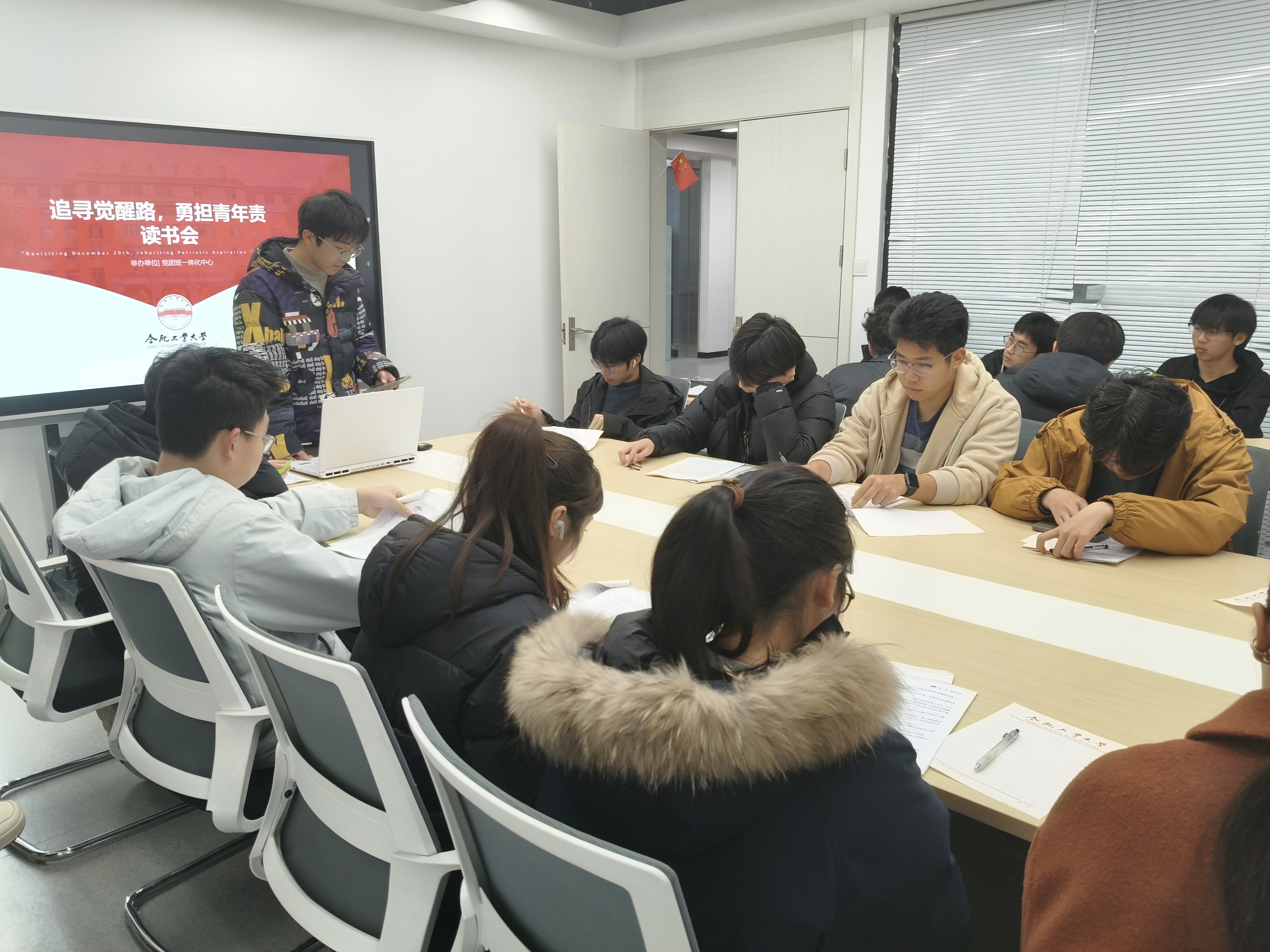 “书香熠志”读书沙龙第一期活动在翡翠湖校区5号楼学生社区沙龙空间顺利举办。本次活动以“追寻觉醒路 勇担青年责”为主题,学院多名青年学子齐聚一堂,共品红色经典、共悟青年担当,在书香浸润中接受思想洗礼、凝聚奋进力量。