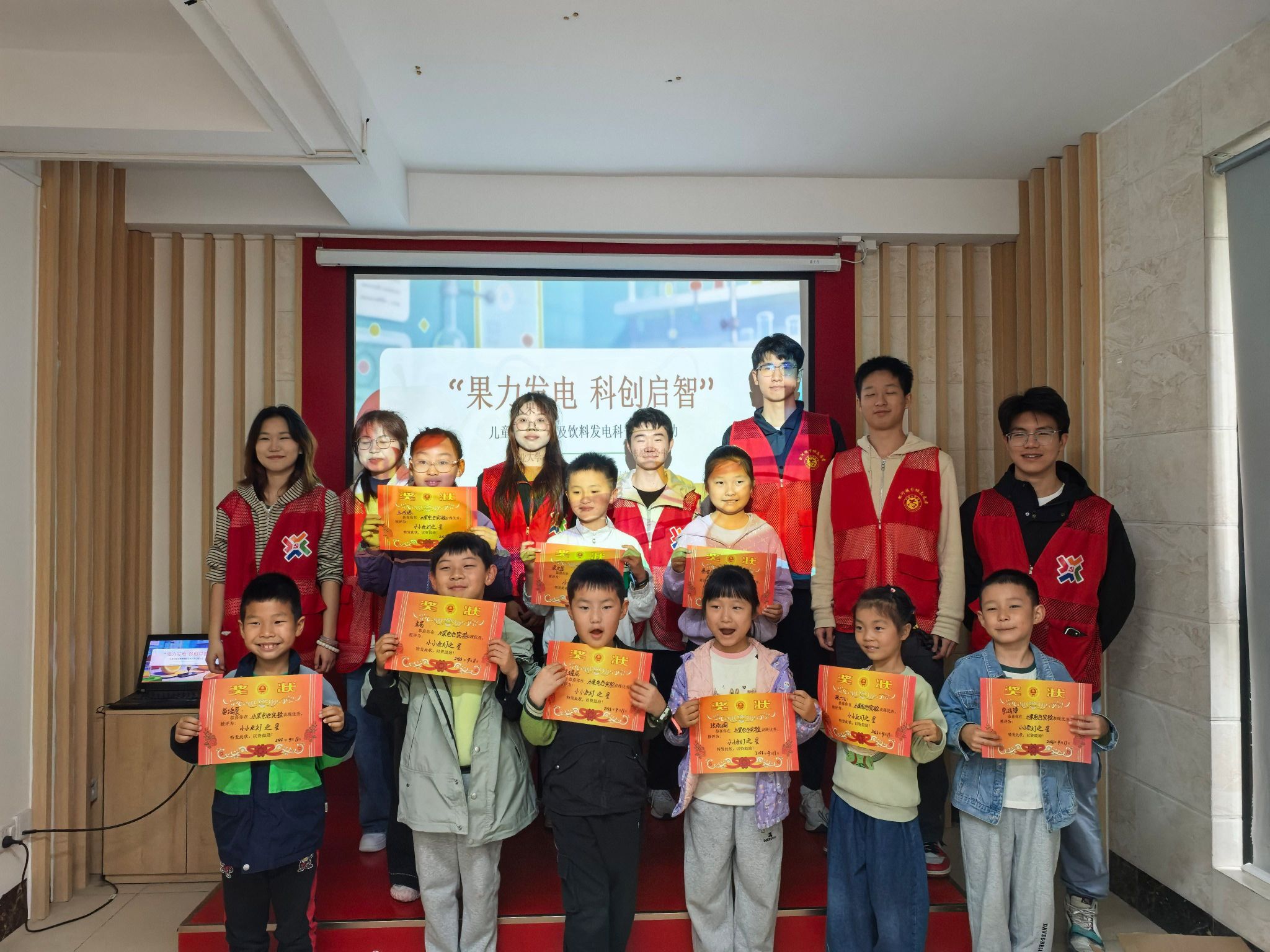 赴合肥市淝河镇席井村党群服务站,开展“果力发电 科创启智”社区儿童科普实验活动。