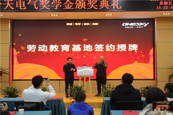 赴安徽一天电气技术股份有限公司开展2023年“一天电气奖学金颁奖仪式暨劳动教育实践基地签约授牌仪式”活动,获奖学生和学院相关领导老师参加活动。