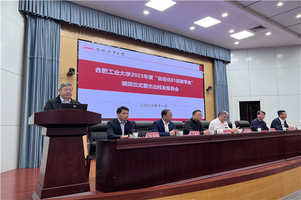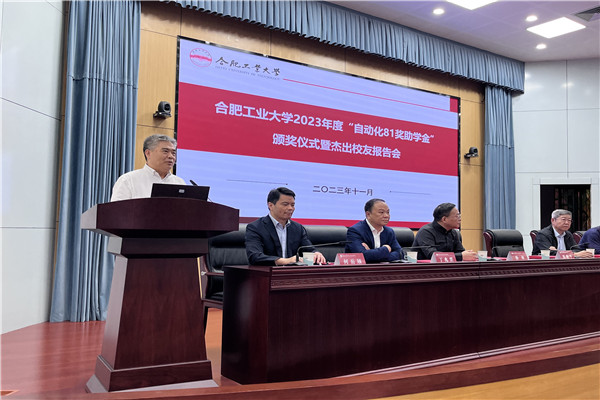 刘晓平在致辞中向自动化专业81级校友们长期以来对母校的支持和关注表示衷心感谢,并对获奖学生表示祝贺。刘晓平从人才培养、科学研究、学科建设等方面介绍了学校近年来取得的办学成果,特别是学校形成的“千人一名领军人才”人才培养的响亮品牌。他强调,校友是学校宝贵的财富,学校各项事业的蓬勃发展离不开校友的关心和支持,这次颁奖仪式彰显了自动化专业81级校友们勇担社会责任、助推母校发展的拳拳之情,希望同学们以优秀校友为榜样,倍加珍惜这份珍贵的情谊,保持一颗向上向善的心,主动涵养艰苦奋斗、自强不息、追求卓越、勇攀高峰的意志品质,努力成长为德才兼备、能力卓越,自觉服务国家的骨干与领军人才。