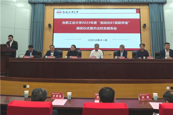 第九届“自动化81奖助学金”颁奖仪式暨杰出校友报告会在学术会议中心一楼大报告厅举行。校党委常委、副校长刘晓平,“自动化81奖助学金”捐赠校友代表、深圳达实智能股份有限公司董事长刘磅,上海达实公司总经理王丹宇,广州科技金融创新投资控股有限公司资深投资经理杨林,合肥华星集团董事长吴延陵,安徽省电力经济技术研究院院长李淮海等出席仪式。