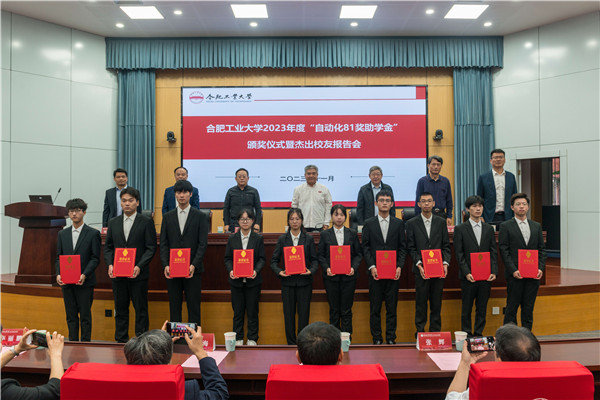 第九届“自动化81奖助学金”获得者的决定》,并对获奖学生表示诚挚祝贺。“自动化81奖助学金”一等奖学金获得者王张璟代表全体获奖同学,向辛勤培育的母校和老师表示最诚挚的感谢,向一直以来关心学院发展、支持资助育人工作的广大校友致以诚挚的敬意和衷心的感谢,号召同学们恒心如一,牢记“工业报国”使命,以“滴水穿石”之功,实现自我人生价值。