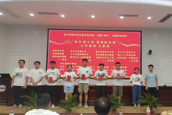 本科生第三党支部在学术会议中心三楼报告厅开展“爱国·青年——红色留心间,情诗献祖国”主题实践活动。