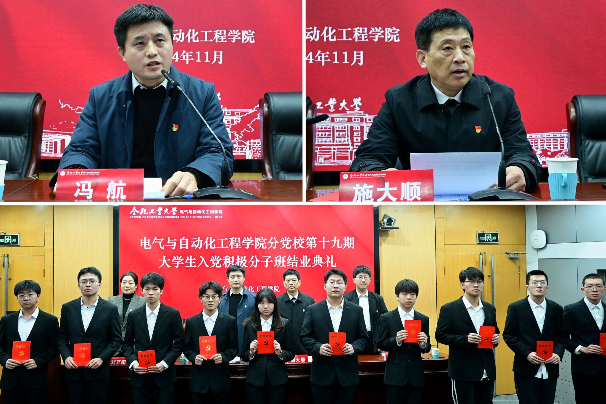 典礼在庄严的国歌中拉开序幕。刘开阳宣读了《关于批准学院分党校第十九期大学生积极分子培训班学员结业的通知》,本期培训班共计102名学员顺利结业。施大顺宣读了《关于表彰学院分党校第十九期大学生积极分子培训班“优秀学员”和“优秀班主任”的决定》,与会领导老师为朱国庆等10名优秀学员进行颁奖。电气工程专业2023级硕士研究生陈熙之作为学生代表发言,对各级党委的关心表示衷心感谢,分享了党校培训中的收获,并代表全体学员承诺,将以更加坚定的信念、更加饱满的热情、更加过硬的本领,通过实际行动为中国式现代化挺膺担当。